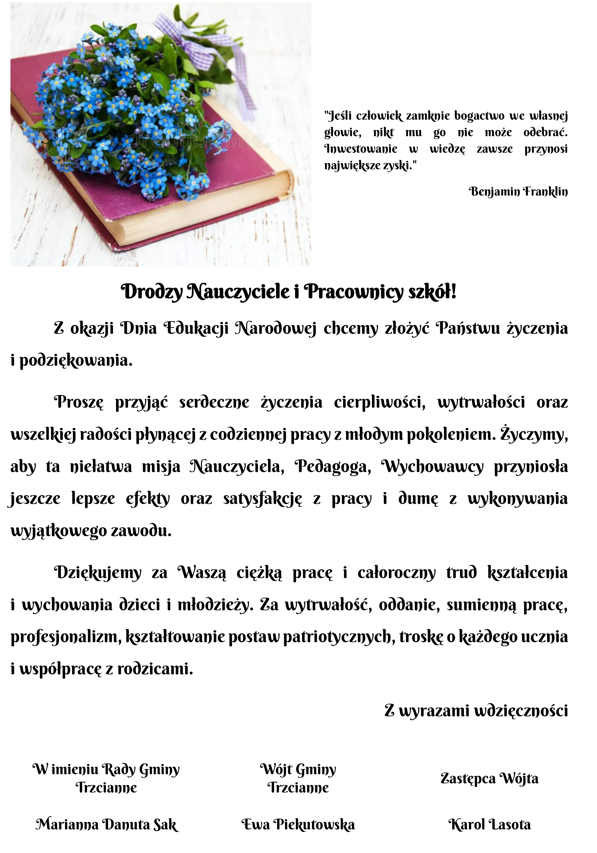 Życzenia z okazji Dnia Nauczyciela